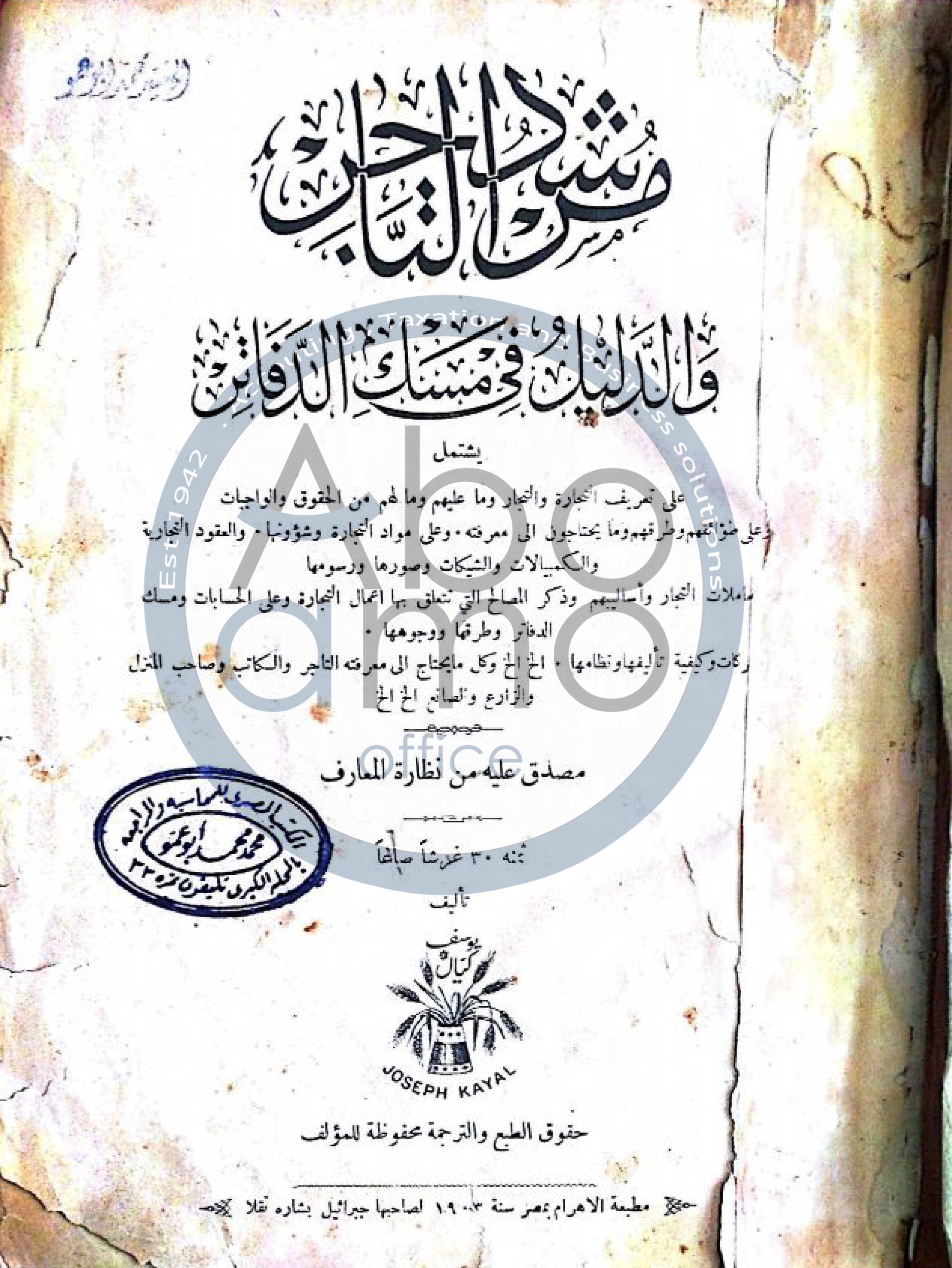 - In our cherished collection, there is a book published in Egypt in 1903 by Al-Ahram Press. It bears the stamp of 'Al-Masri for Accounting and Auditing' with the telephone number (33) in Al-Mahalla Al-Kubra. The book, titled 'Merchant's Guide and Manual in Bookkeeping,' priced at 30 piasters, is authenticated by the Supervisory Board of Knowledge. Among its pages, it mentions that the official currency in Egypt is :